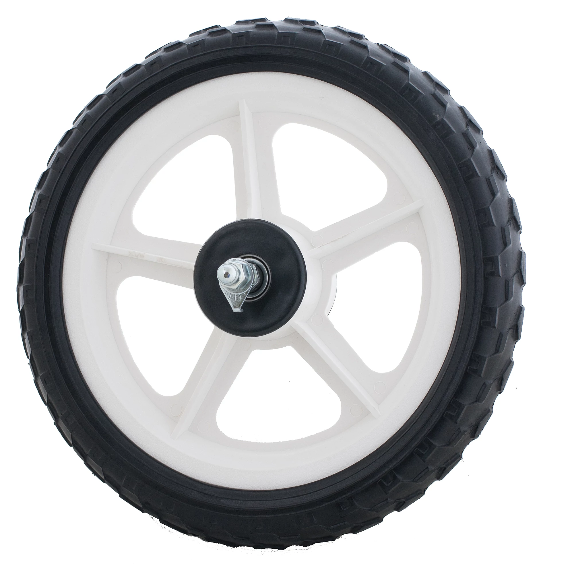 Müanyag kerék 12 első fekete-fehér csavarral és körmös alátéttel